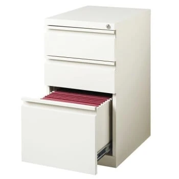 - Hirsh 20″ White Deep Mobile Pedestal File Cabinet 3 Drawer Box