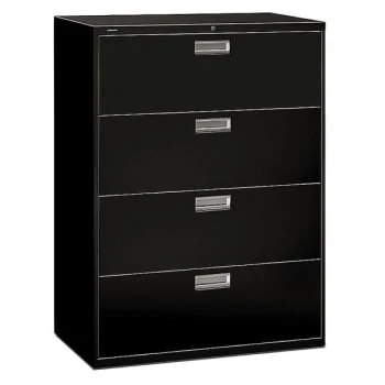 - HON® Black 4-Drawer 600 Series Lateral File 53-1/4″ x 42″ x 19-1/4″