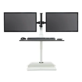 - Safco Soar™ Electric Desktop Sit/Stand Dual Monitor Arm, For 27″ Monitors, White